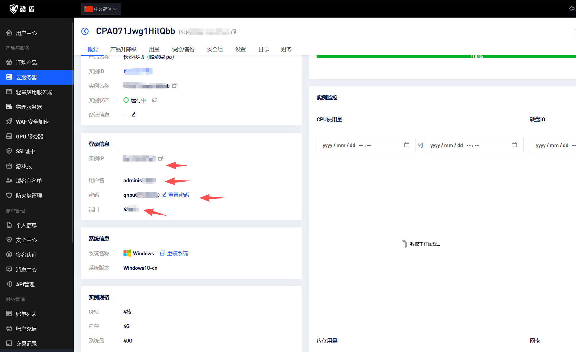 拿到所属的机器的IP地址,用户名,密码等参数,等下要使用。如图所示